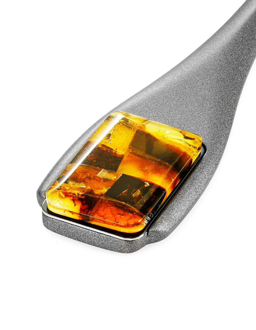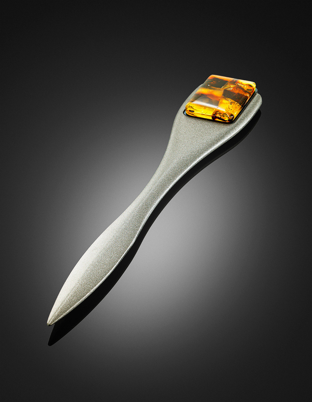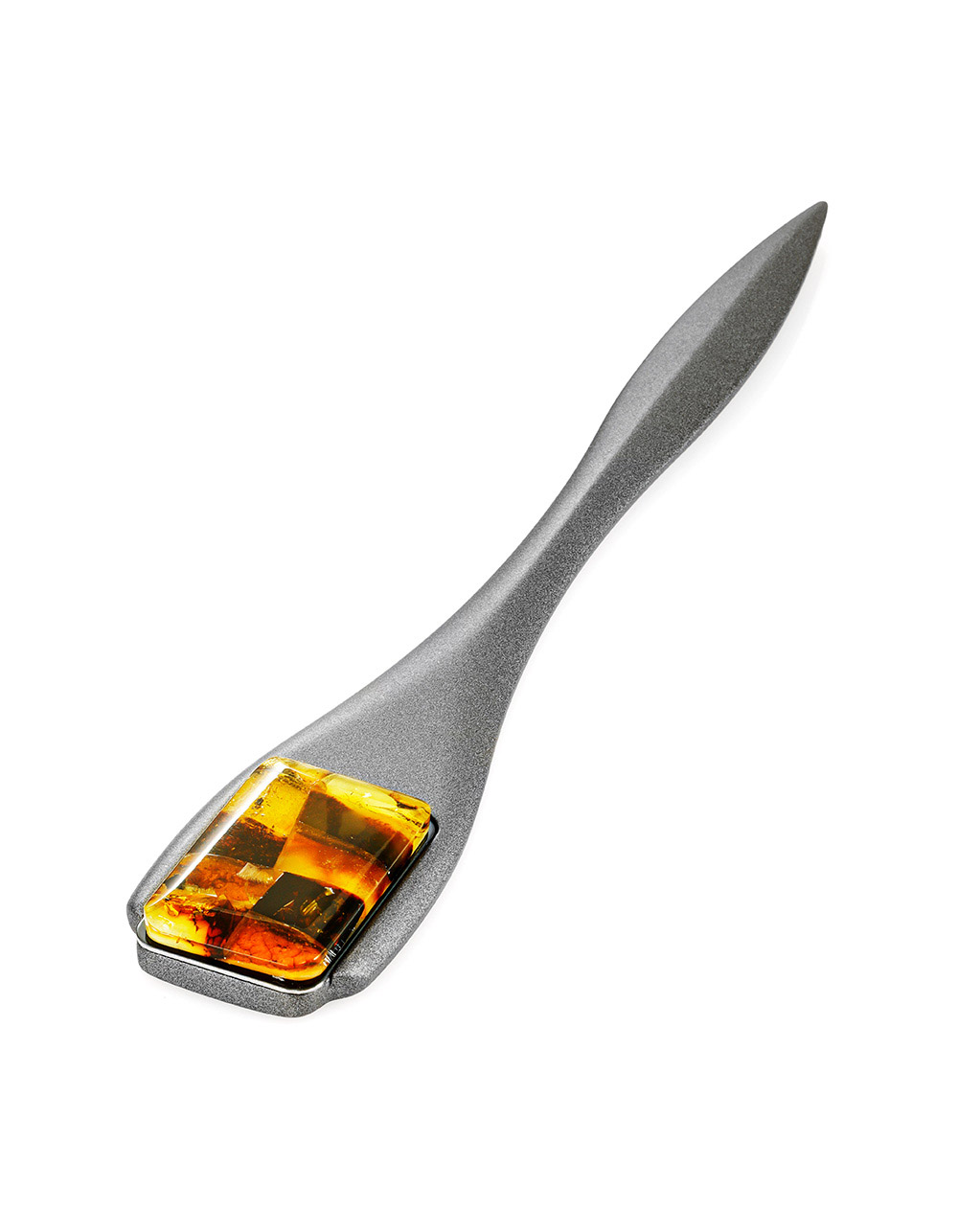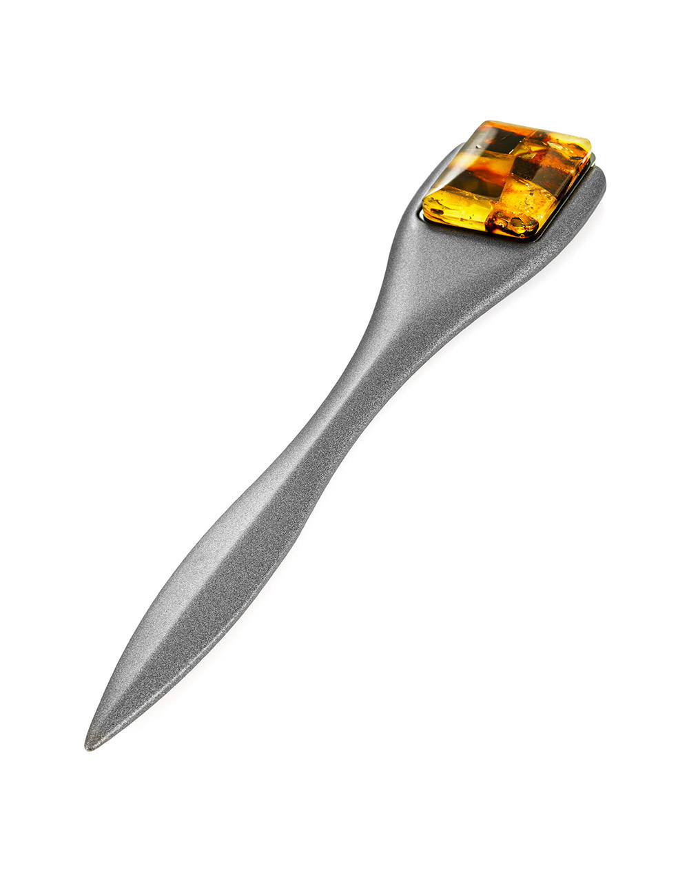 Стальной нож для писем, украшенный натуральным балтийским янтарём