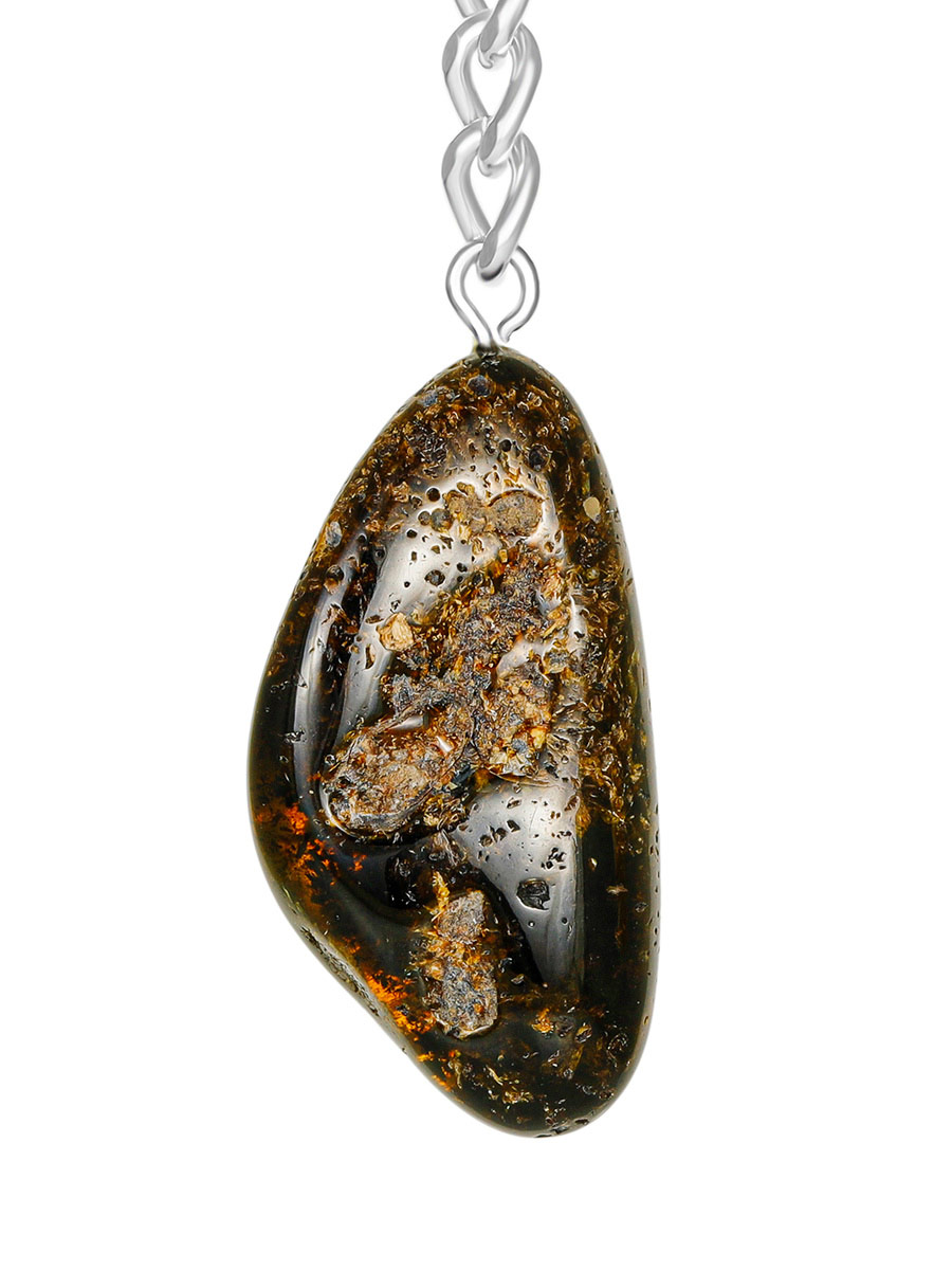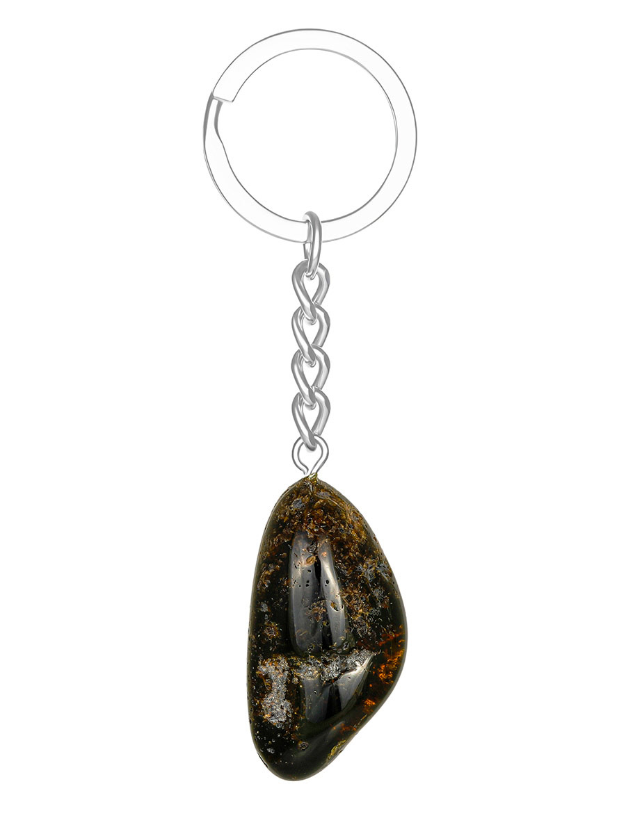 Сувенир-брелок из кусочка цельного янтаря чёрного цвета