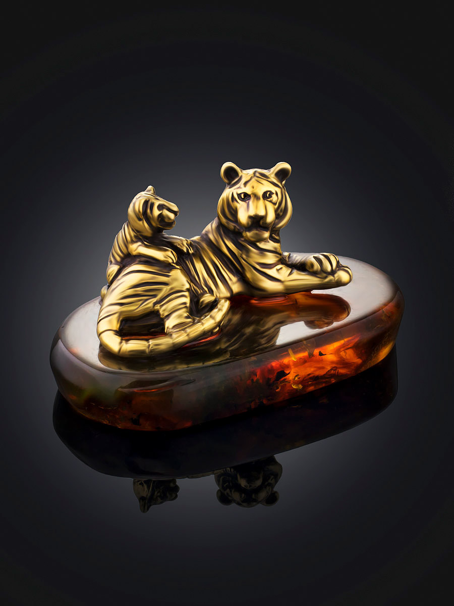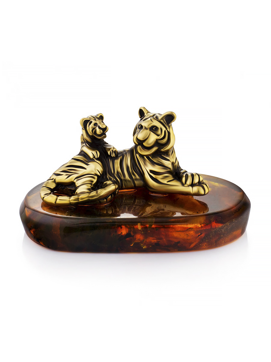 Сувенирная фигурка с натуральным балтийским янтарём «Тигрица и тигрёнок»