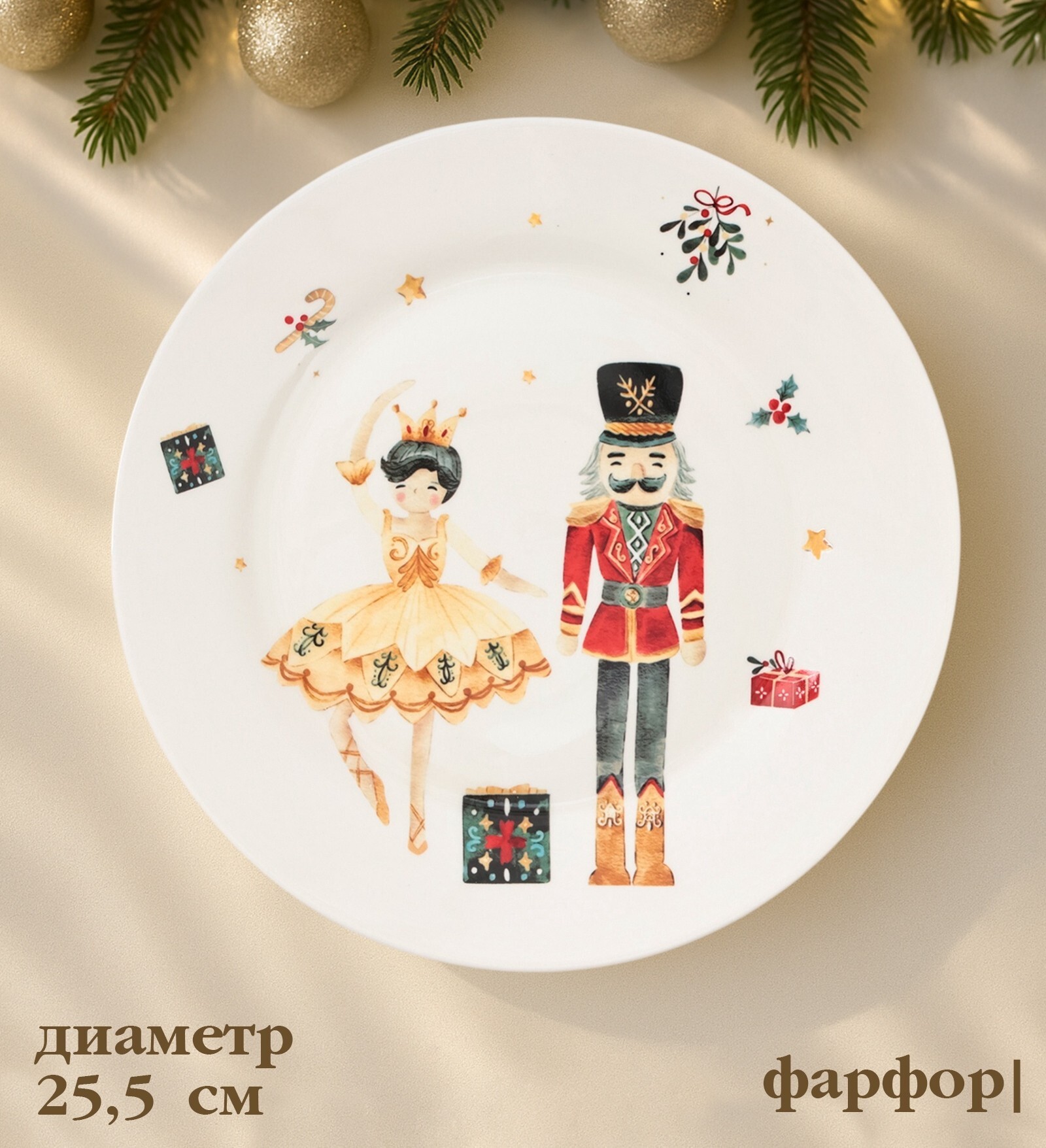 Тарелка новогодняя Доляна «Сказочный бал.Щелкунчик», d=25.5 см, фарфор, белая
