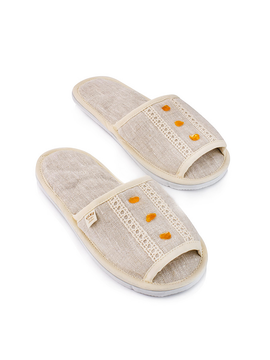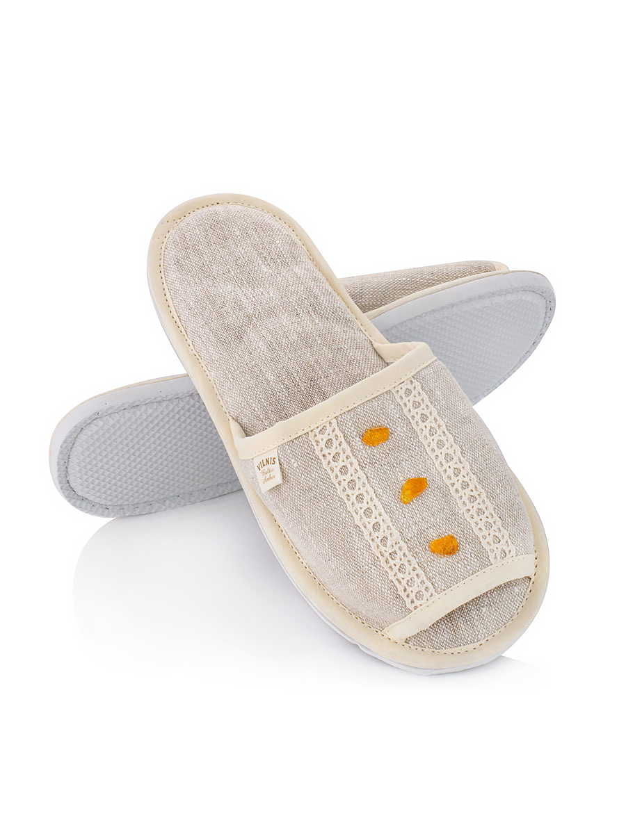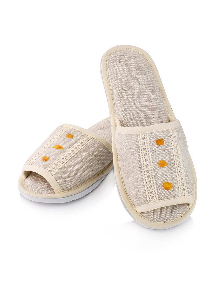 Текстильные домашние тапочки с массажной зоной из янтаря