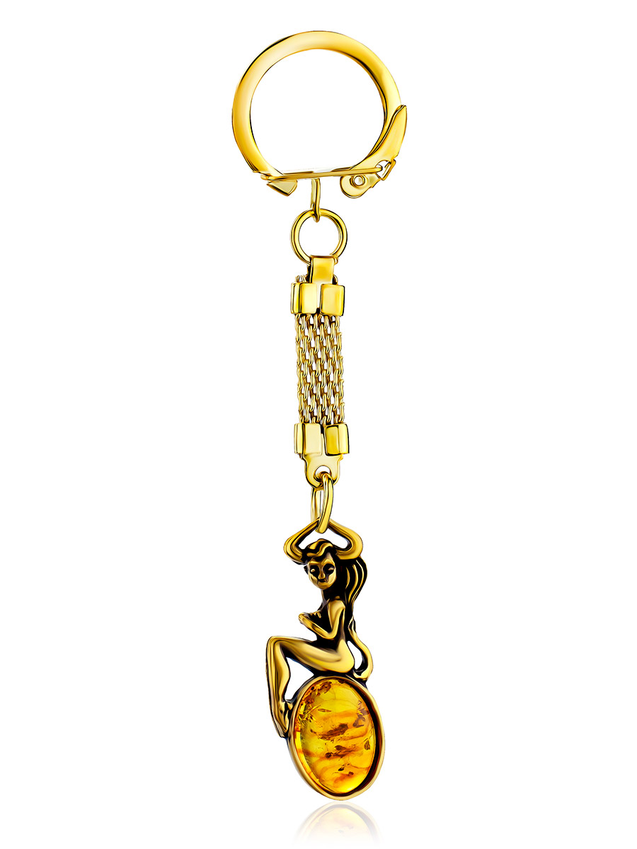 «Телец». Брелок с вставкой из натурального коньячного янтаря
