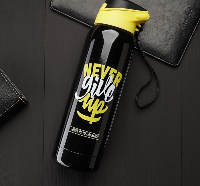 Термос с поильником Never give up, 500 мл, сохраняет тепло 12 ч