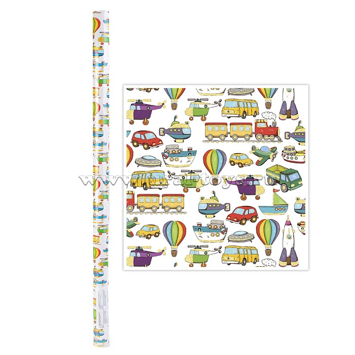 Упаковочная бумага, Цветной транспорт, для сувенирной продукции в листах размером 100*70 см