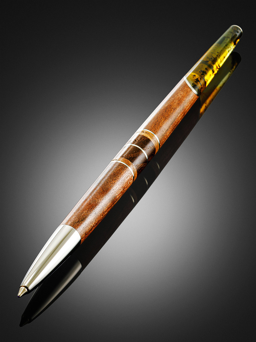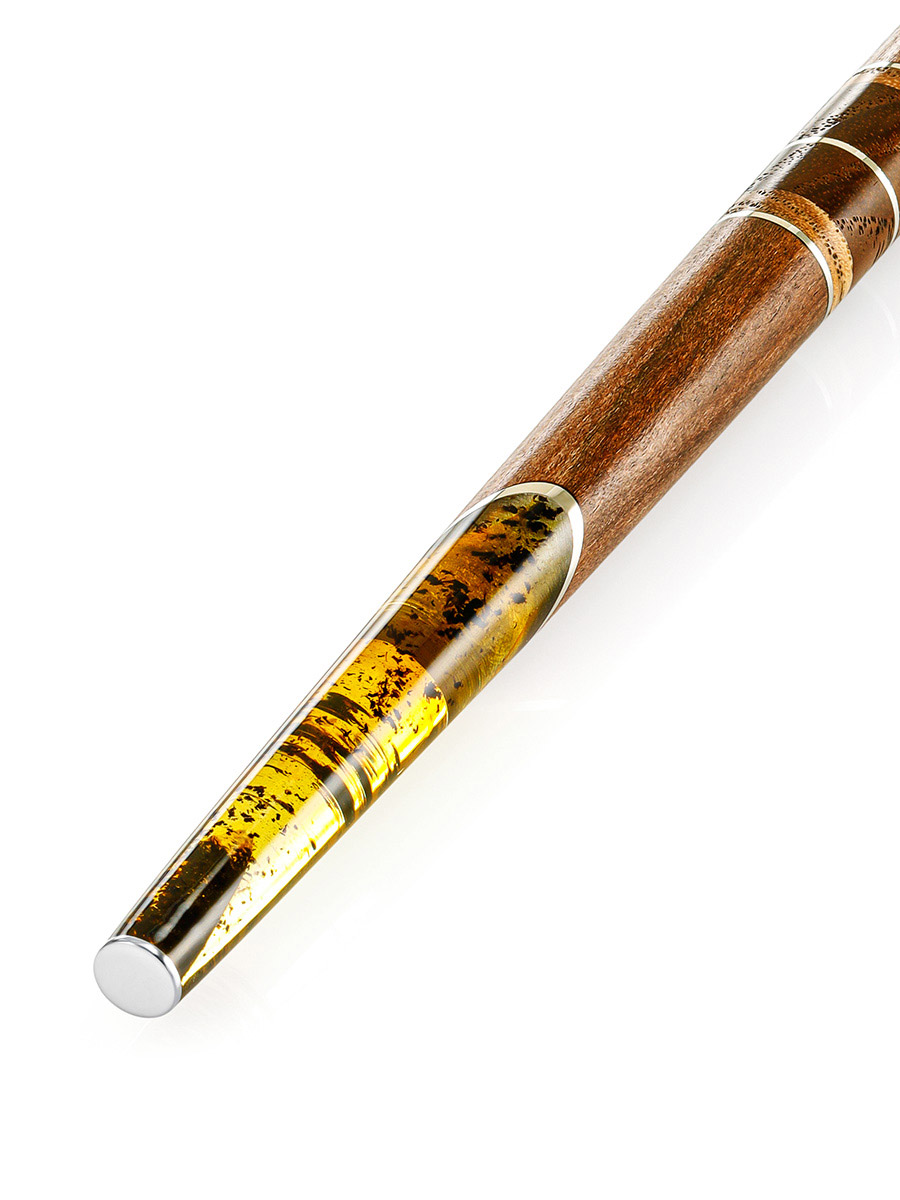 Уникальная ручка из дерева и натурального цельного балтийского янтаря «Олливандер»