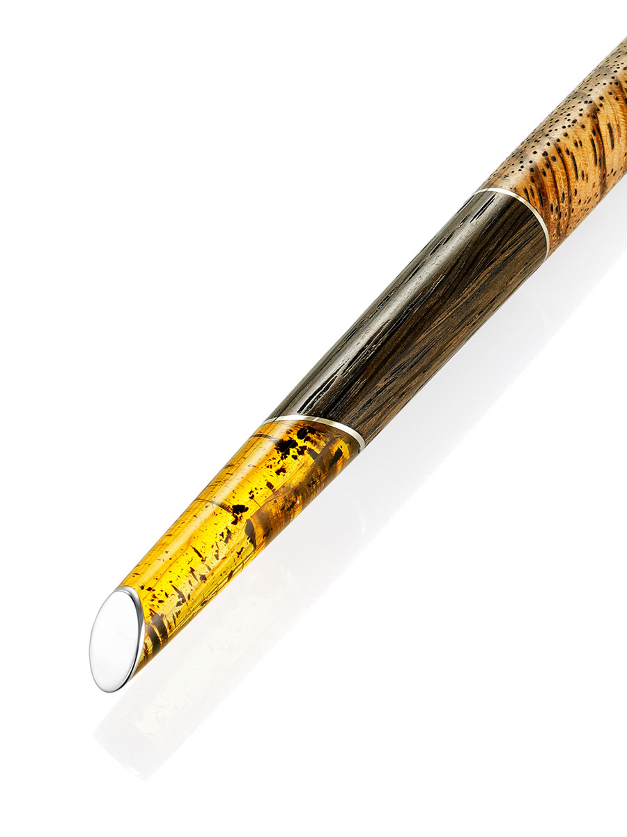 Уникальная ручка из дерева с натуральным балтийским янтарём с природной текстурой «Олливандер»