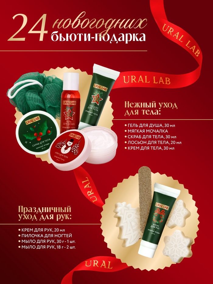 Адвент-календарь косметики Happy New Year, 24 предмета, URAL LAB
