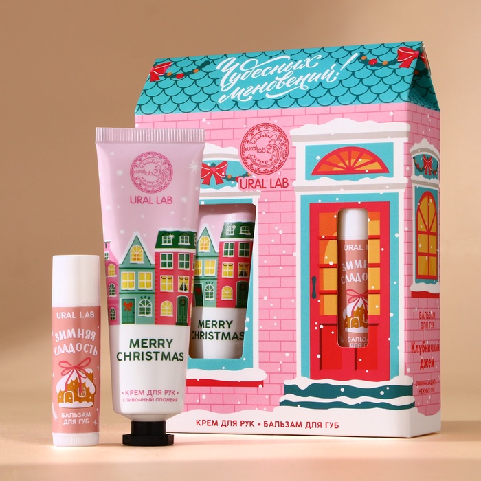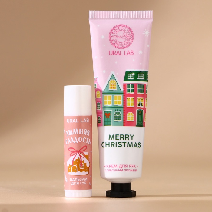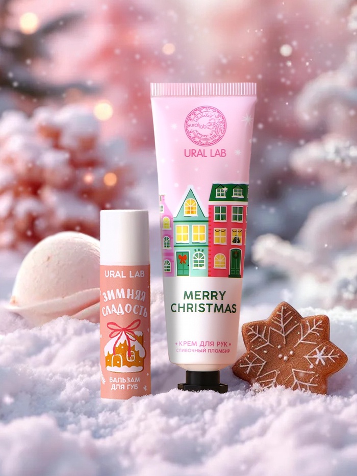 Новогодний подарочный набор косметики «Чудесных мгновений»: крем для рук 30 мл и бальзам для губ 10 г, URAL LAB