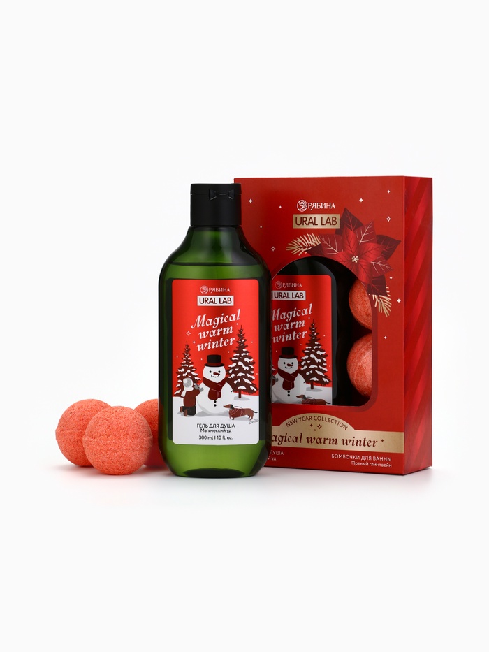Новогодний подарочный набор косметики Magical warm winter: гель для душа, 300 мл и бомбочки для ванны, 4×40 г, URAL LAB
