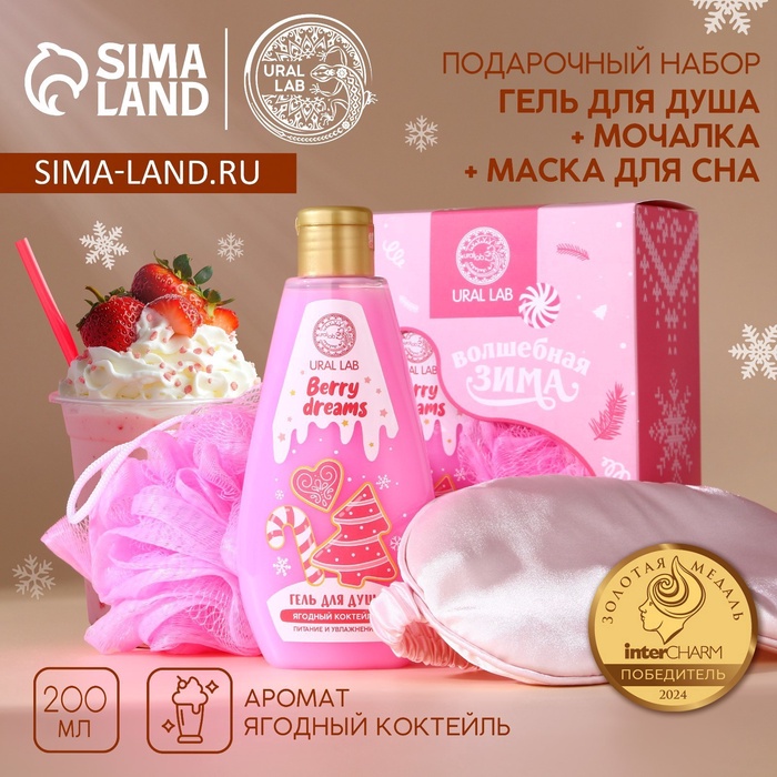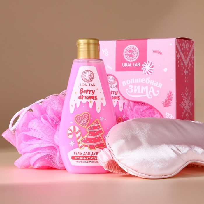 Новогодний подарочный набор косметики «Волшебная зима»: гель для душа 200 мл, мочалка для тела и маска для сна, URAL LAB