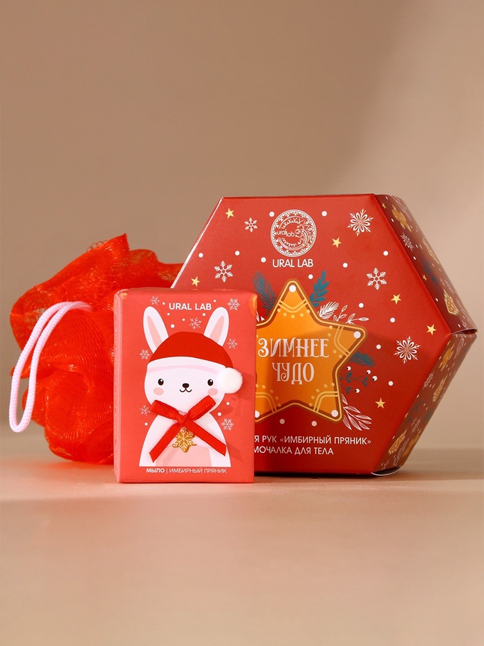 Новогодний подарочный набор косметики «Зимнее чудо»: мыло для рук кусковое 100 г и мочалка для тела, URAL LAB
