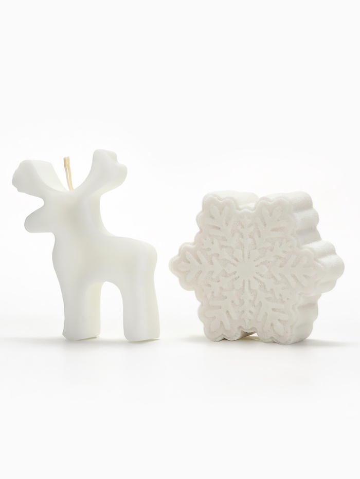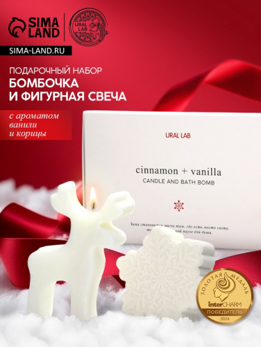 Подарочный набор новогодний: бомбочка снежинка и фигурная свеча олень, URAL LAB