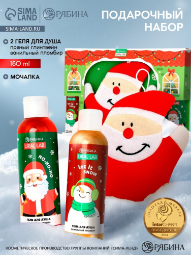 Подарочный набор новогодний «Дед Мороз», гель для душа 2 шт. × 150 мл, мочалка, URAL LAB