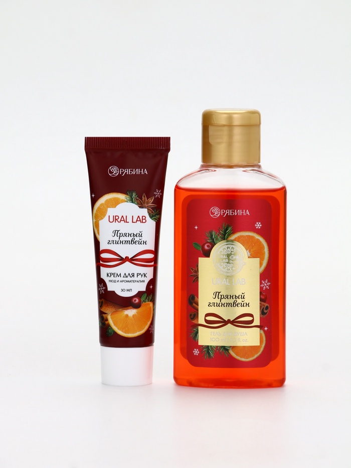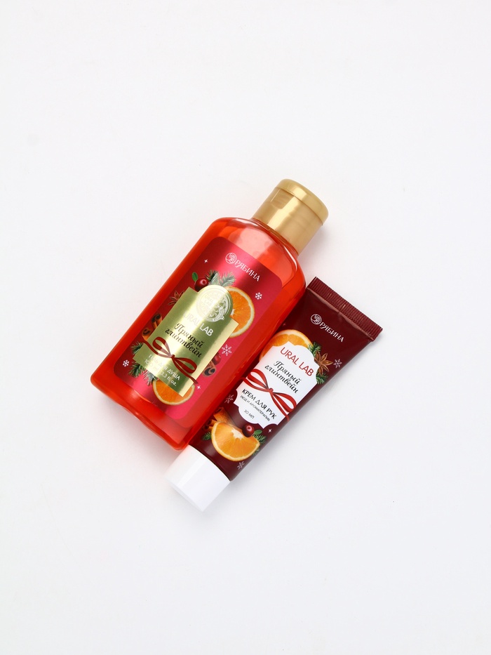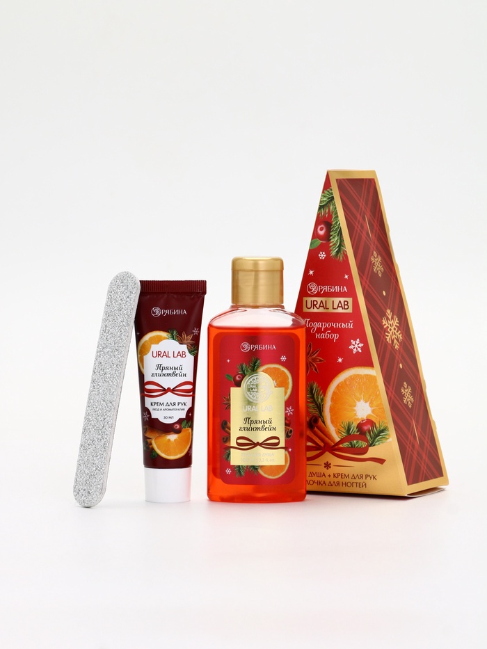 Подарочный набор новогодний: гель для душа, крем для рук и пилка для ногтей, аромат глинтвейн, URAL LAB