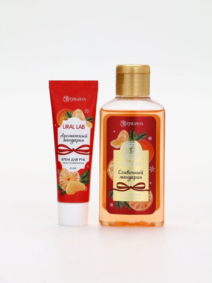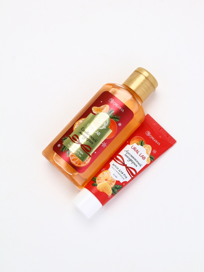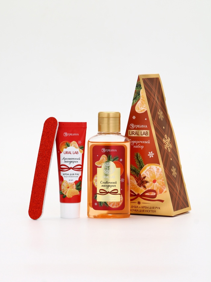 Подарочный набор новогодний: гель для душа, крем для рук и пилка для ногтей, аромат мандарин, URAL LAB