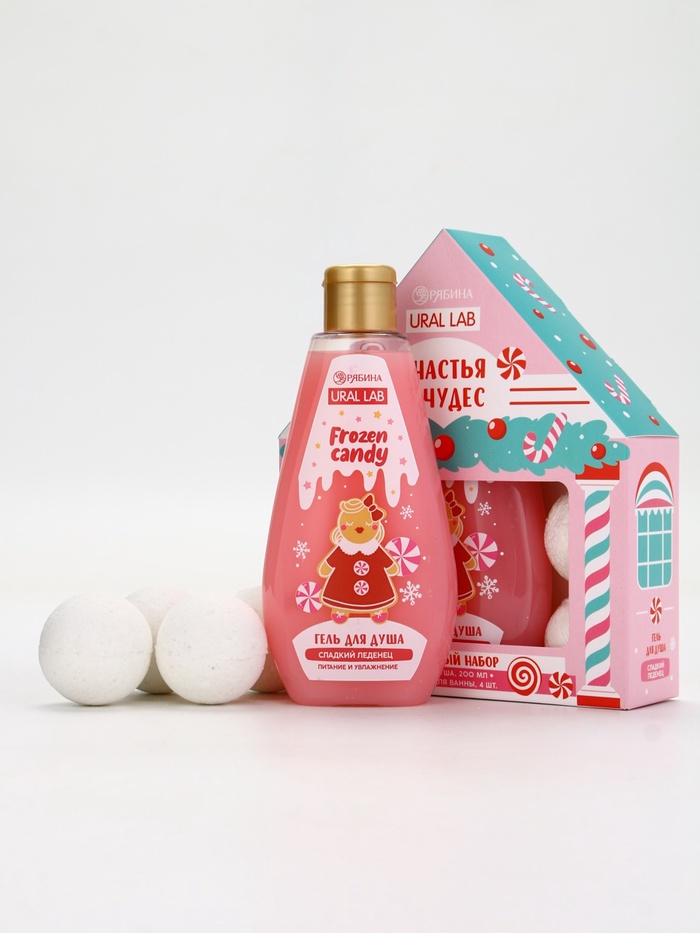 Подарочный набор новогодний «Счастья и чудес»: гель для душа, 200 мл и бомбочки для ванны 4 шт. × 40 г, URAL LAB