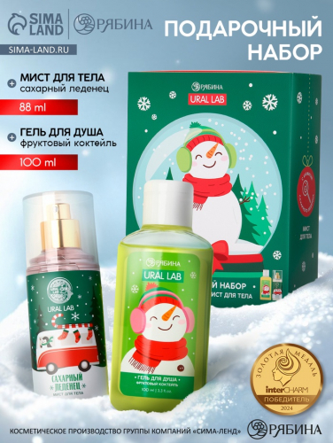 Подарочный набор новогодний «Снеговик», гель для душа, кружка, мочалка и крем для рук, URAL LAB