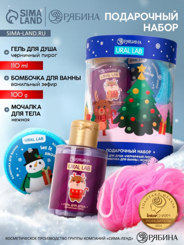 Подарочный набор новогодний в тубусе «Лисичка», бомбочка, гель, мочалка, URAL LAB