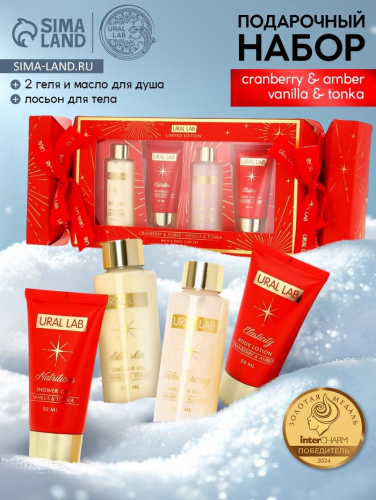 УЦЕНКА URAL LAB Набор «Счастливого праздника», два геля для душа, 2×100 и мочалка для тела