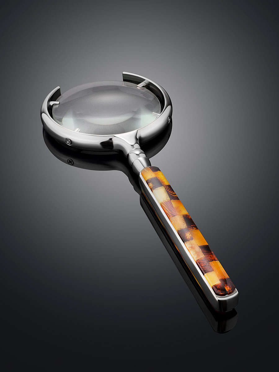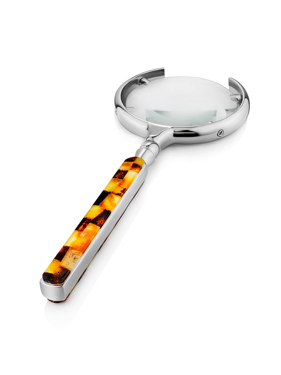 Увеличительное стекло с рукояткой, украшенной натуральным янтарём