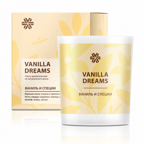 Vanilla Dreams – не просто аромасвеча, это ритуал уюта и расслабления. Верхние ноты специй и пряностей пробуждают чувства, сердце из кардамона, корицы и ванили согревает, а шлейф из амбры и мускуса окутывает нежным облаком.