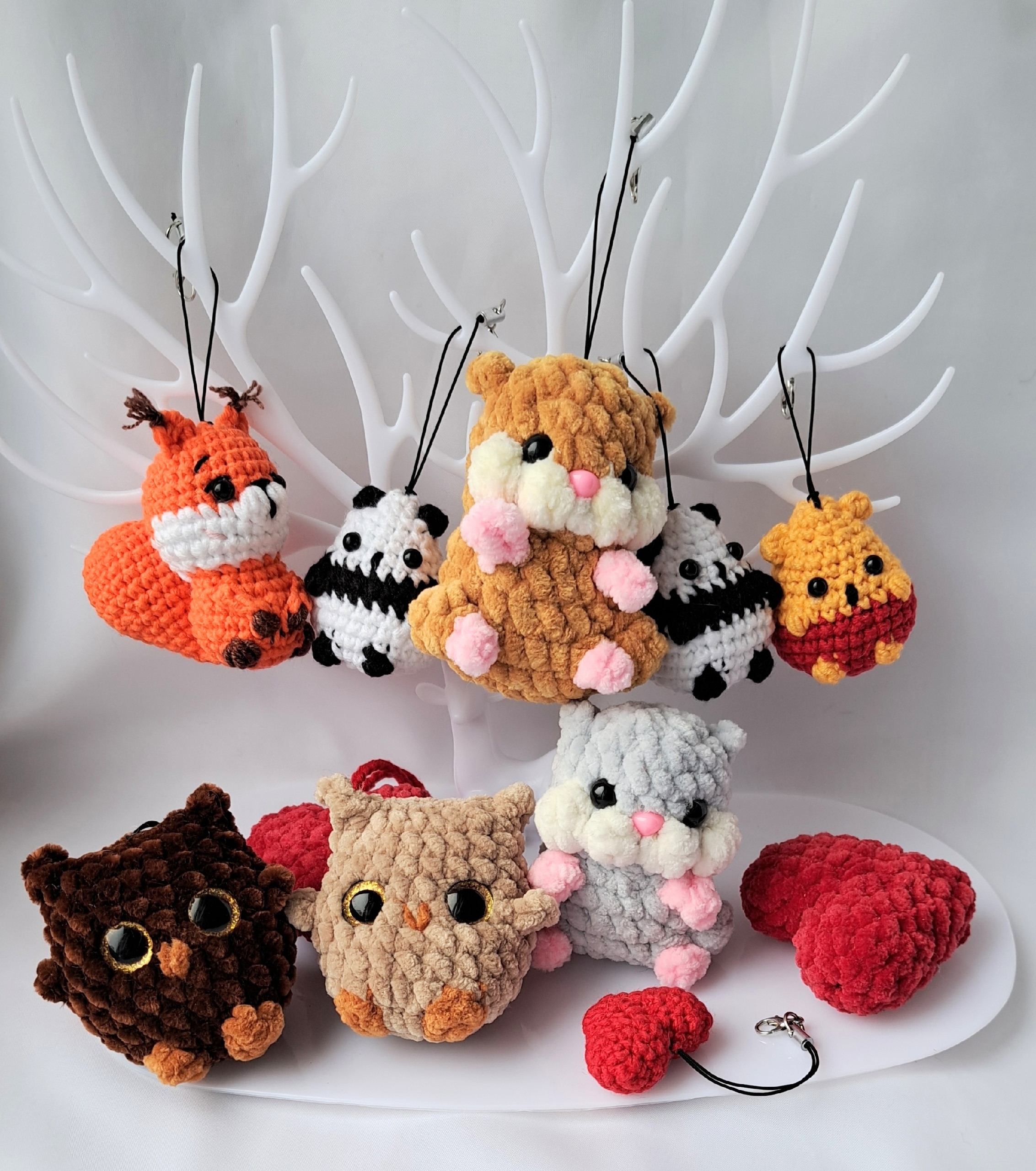 Брелочки связаны из полухлопковой и плюшевой гипоаллергенной пряжи.