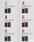 Благодаря высокой концентрации пигментов помада насыщает губы стойким цветом без полос
