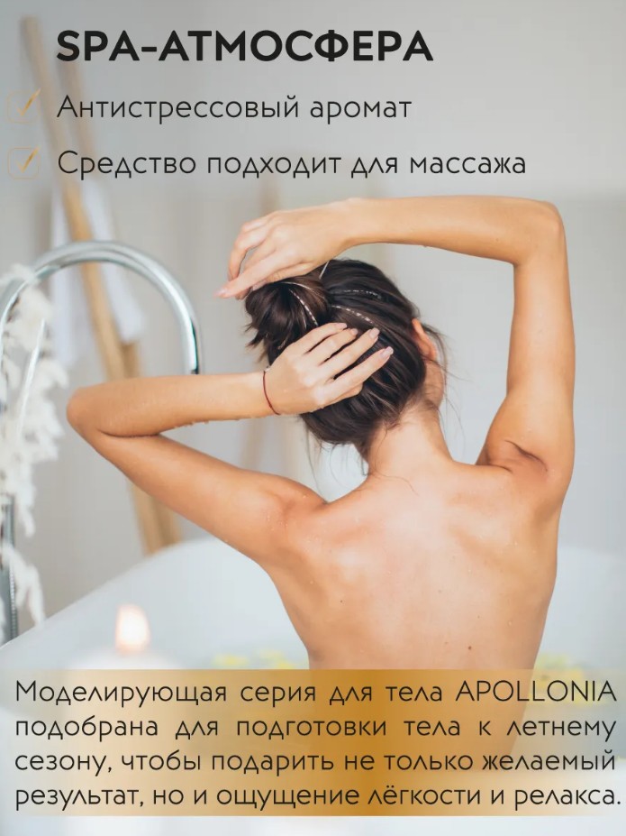 Масло массажное для тела серии APOLLONIA создано подтянуть тонус кожи и мышц, подарить ощущение легкости и релакса! Масло обеспечивает идеальное скольжение и мягкое разогревающее действие. Увеличивая эффективность антицеллюлитного массажа. Комплекс ценных масел, экстракт красного перца, экстракты куркумы, зелёного кофе, имбиря, корицы и донника стимулируют кровообращение и тонизируют кожу, уменьшают выраженность растяжек. Масло можно использовать не только как массажное, но и для ежедневного ухода за кожей тела и рук после принятия ванны и душа и других водных процедур. Подходит не только для профессионалов, но и для самомассажа.