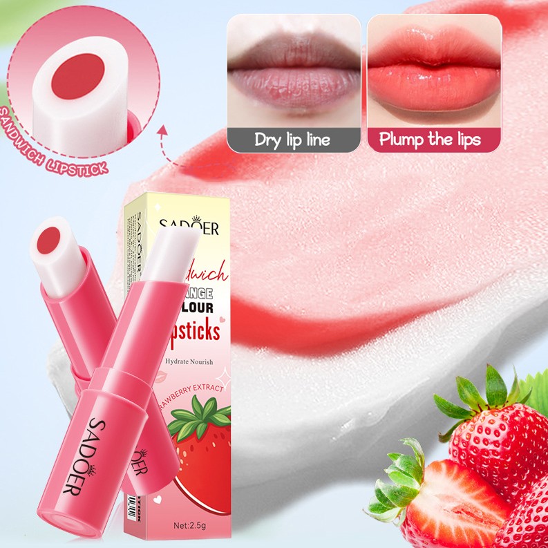 Бальзам для губ с Клубникой 2 в 1 "Увлажнение + Оттенок" Sadoer, 2,5 гр.