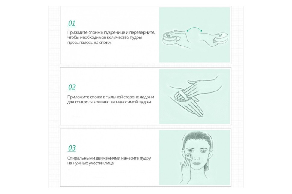Способ применения: Можно использовать как самостоятельно, так и на макияж, для придания матовости финишу. Равномерно нанесите пудру спонжиком или кистью на лицо, растушуйте до равномерного покрытия.
