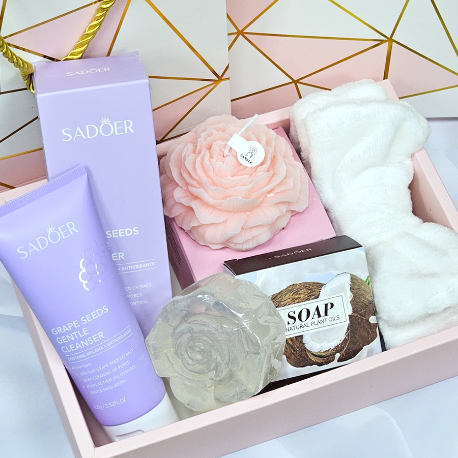 Бьюти-бокс + Подарочный пакет (Пенка, Свеча, Мыло, Повязка)