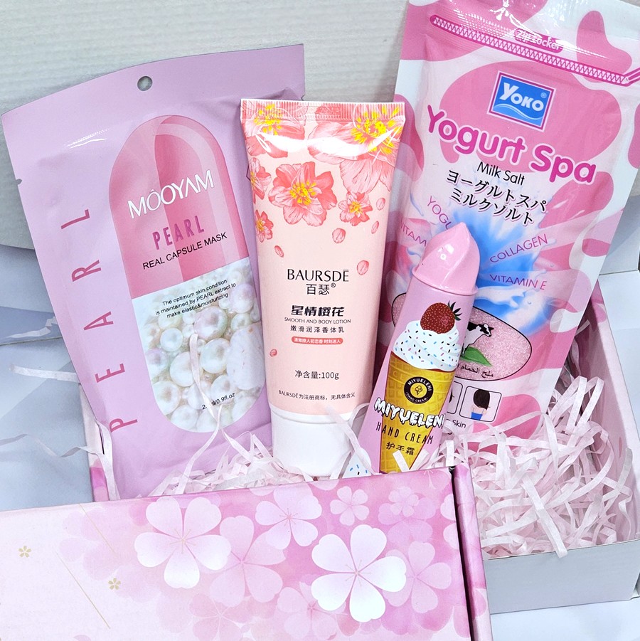 Бьюти-бокс Розовые цветы (Скраб, Лосьон для тела, Маска, Крем для рук)