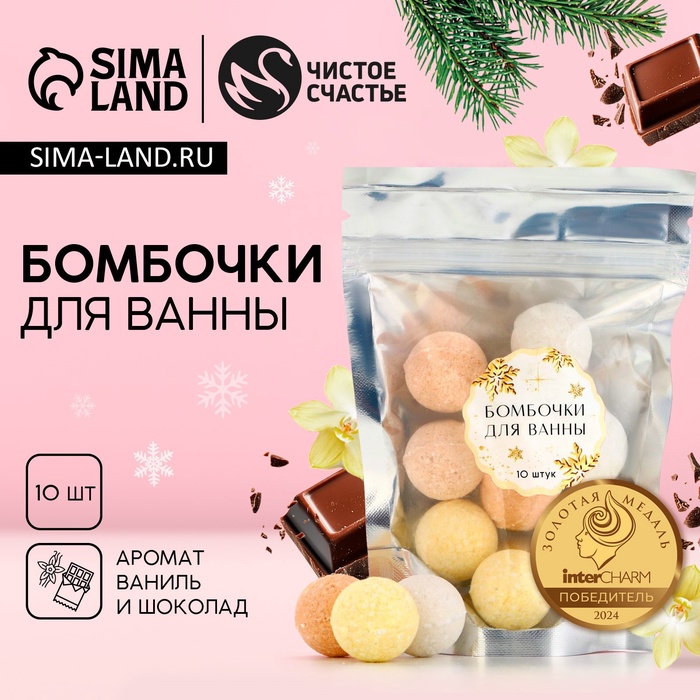 Набор бомбочки для ванны ЧИСТОЕ СЧАСТЬЕ, 10х10 г, аромат ванили и шоколада, Новый Год
