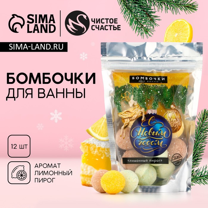 Бомбочки для ванны «С Новым Годом», аромат лимонный пирог, 12×20 г, Чистое счастье