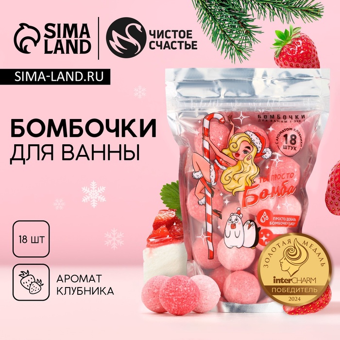Бомбочки для ванны «Ты просто бомба», аромат клубники, 18×20 г, Чистое счастье