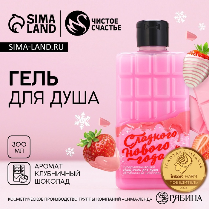 Гель для душа «Сладкого Нового года!», 300 мл, аромат клубничного шоколада, Чистое счастье