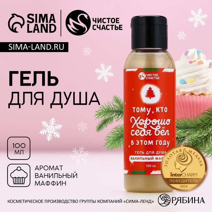 Гель для душа «Тому, кто хорошо вёл себя», 100 мл, аромат ванильного маффина, Чистое счастье