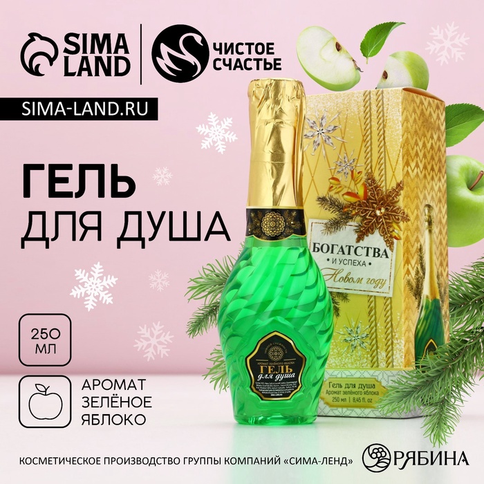 Гель для душа мондоро «Богатства и успеха в Новом году», 250 мл, аромат зеленого яблока, Чистое счастье