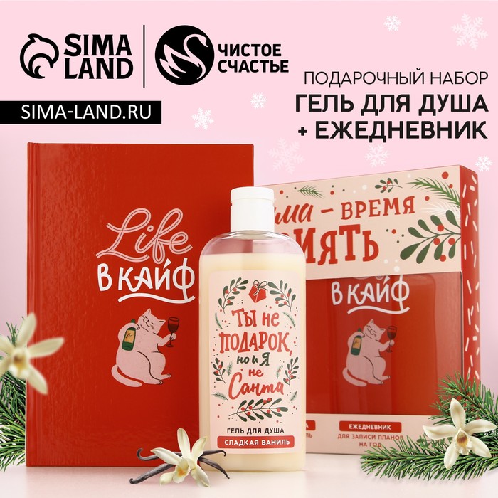 Новогодний подарочный набор косметики «Время сиять», гель для душа 250 мл и ежедневник, Чистое счастье