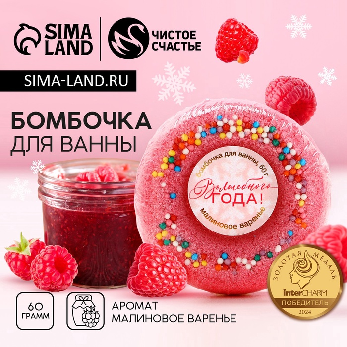 Бомбочка для ванны «Волшебного года», 60 г, аромат малинового варенья, Чистое счастье