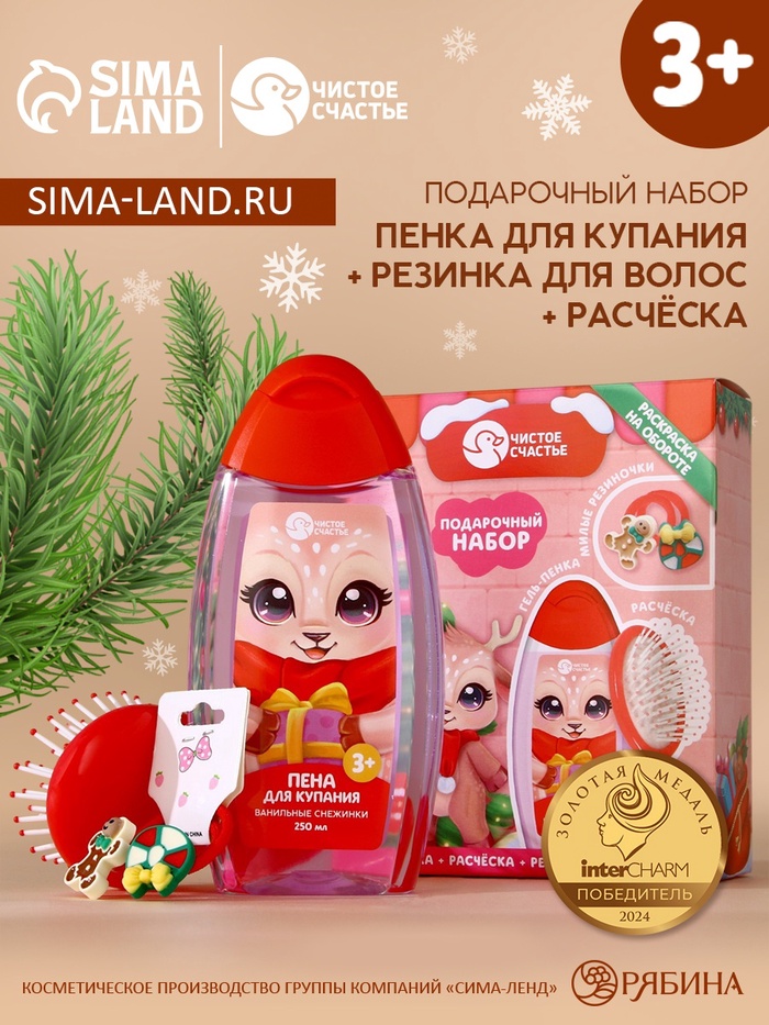 Подарочный набор детский «Оленёнок», пена для купания 250 мл, расчёска и резинки для волос, Чистое счастье