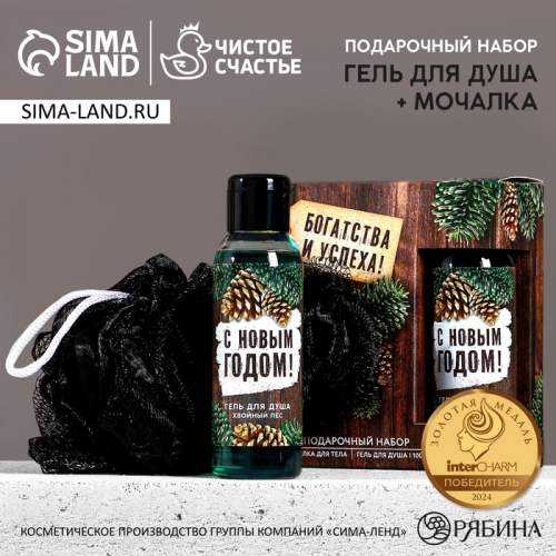 Подарочный набор новогодний мужской «Богатства и успеха», гель для душа 100 мл и мочалка для тела, Чистое счастье