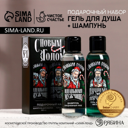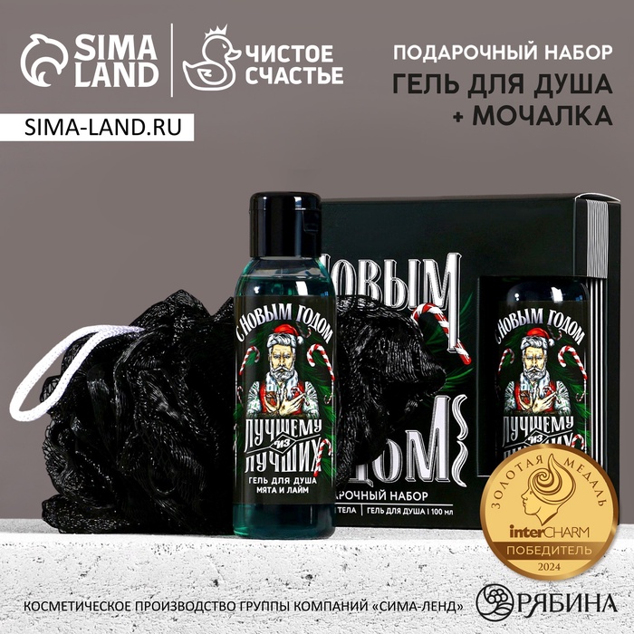 Подарочный набор новогодний мужской «Лучшему из лучших», гель для душа 100 мл и мочалка для тела, Чистое счастье