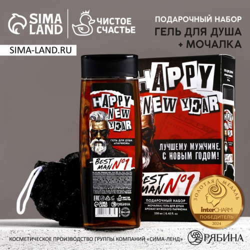 Подарочный набор новогодний мужской «Лучшему из лучших»: гель для душа и шампунь для волос, 2×100 мл, Чистое счастье