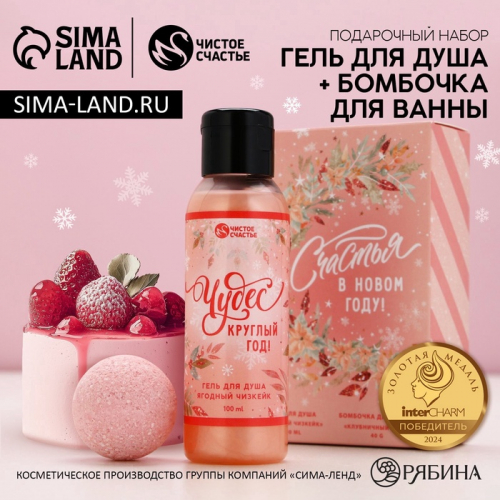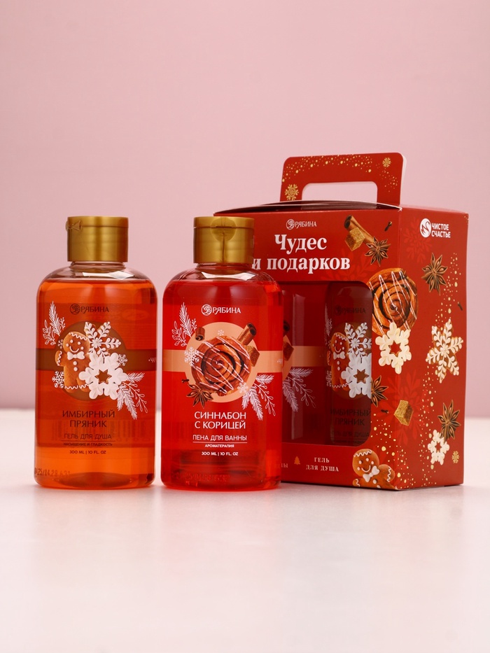 Подарочный набор новогодний женский «Чудес и подарков»: гель для душа и пена для ванны, 2×300 мл, Чистое счастье