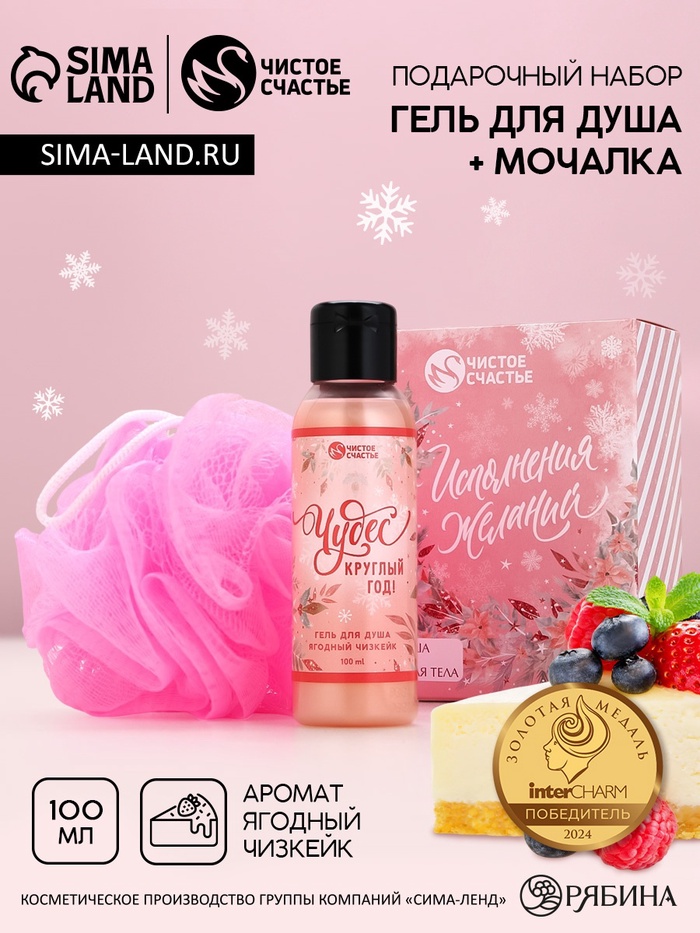 Подарочный набор новогодний женский «Исполнения желаний»: гель для душа 100 мл и мочалка для тела, Чистое счастье