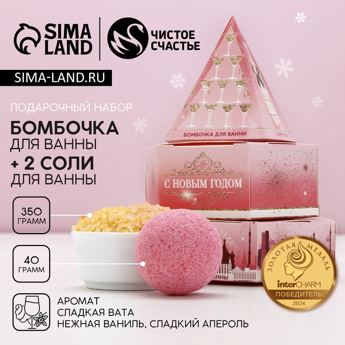 Подарочный набор новогодний женский «С праздником»: бомбочка для ванны 40 г и соль для ванны 350 г, Чистое счастье
