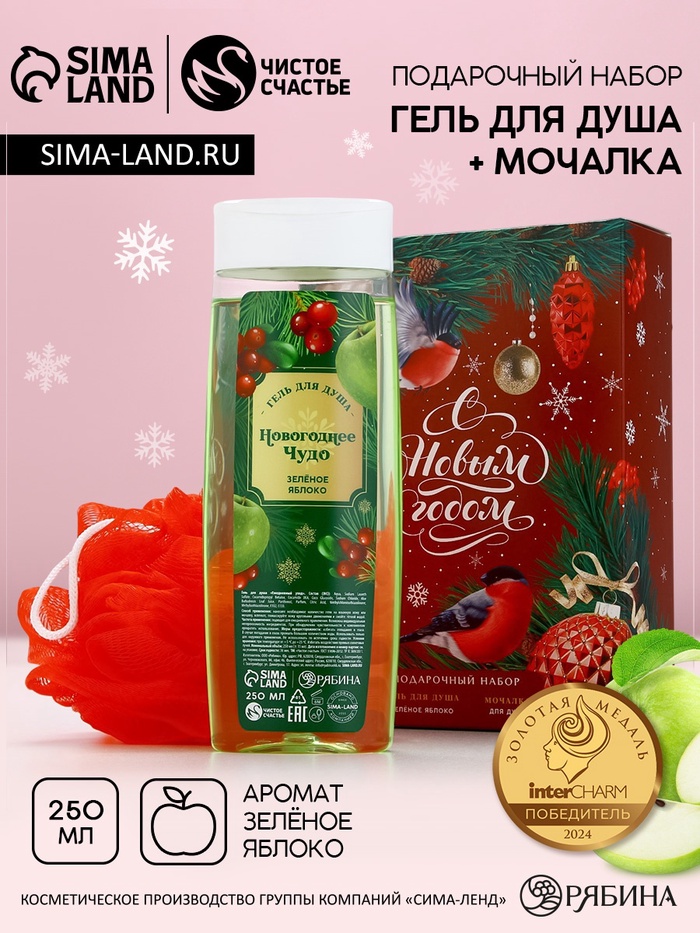 Подарочный набор новогодний женский «С праздником», гель для душа 250 мл и мочалка для тела, Чистое счастье