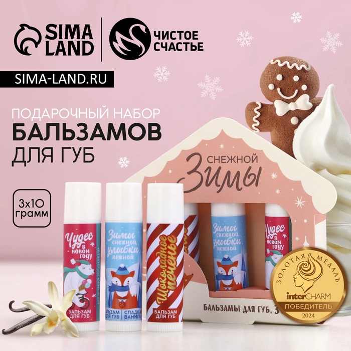 Бальзам для губ «Снежной зимы», новогодний набор 3 шт. × 10 г, Чистое счастье