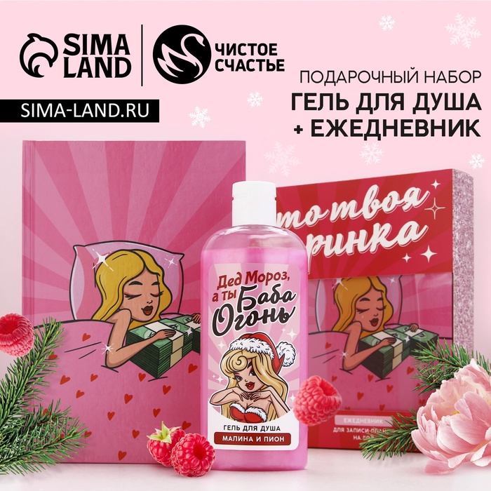 Новогодний подарочный набор косметики «Вечеринка», гель для душа 250 мл и ежедневник, Чистое счастье